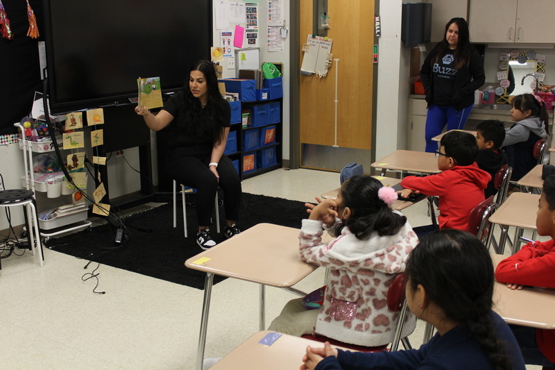 During their visit to the campus, volunteers would spend the morning reading "The Shark That Taught Me English" by Michelle Markel. The story, written in English and Spanish, allowed volunteers to connect with students by reading in both languages.