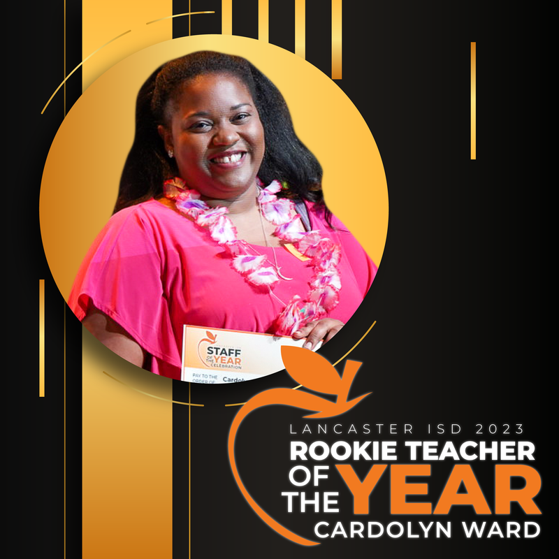 Cardolyn Ward was selected as Rookie Teacher of the Year due to her exceptional qualities and dedication to her students. Ms. Ward joined Lancaster ISD through the district’s road to classroom teacher program, and as a first year teacher, she has maintained a positive attitude and high energy to create an enthusiastic learning environment that captures her students' interest and excitement. She understands the importance of addressing different learning styles, and she incorporates guided reading and hands-on activities to cater to the diverse needs of her students. Ms. Ward's commitment to professional growth is evident through her willingness to implement various procedures and learning strategies, as well as her continuous request for feedback. Not only does she welcome feedback, but she also promptly applies it in her classroom, demonstrating her adaptability and commitment to improving her teaching methods. Ms. Ward's eagerness to learn and her positive attitude contribute to fostering a supportive and enriching educational culture throughout the entire school building, making her a standout first-year teacher deserving of the Rookie Teacher of the Year award.