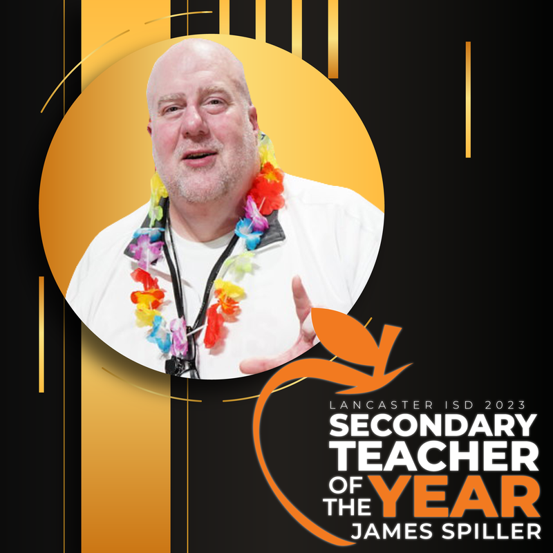 James Spiller, the 8th Grade ELAR teacher at Lancaster Middle School, has been selected as the secondary teacher of the year based on his exceptional qualities and achievements. Since joining LMS in 2018, Mr. Spiller has demonstrated a tremendous concern for all learners, showing a deep understanding of their needs and the ability to engage and inspire them. He actively collaborates with colleagues and various community groups, showcasing his capacity and willingness to work cooperatively for the betterment of his students' education. Mr. Spiller's drive to initiate transformative activities that engage all learners highlights his commitment to innovative and effective instruction. He consistently stays informed about current educational trends and practices, integrating them seamlessly into his classroom. Moreover, his meaningful contributions to education, both within and beyond his classroom, demonstrate his dedication to the field. His innovative and passionate approach to educating all students makes him the perfect selection for the Secondary Teacher of the Year award.