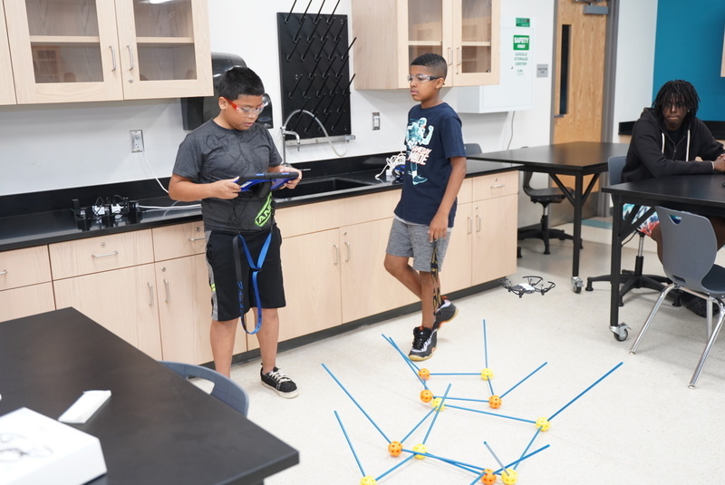 Camp attendees are learning how to code, work with drones, create artwork, and will get an introduction to music production, including making beats and mixes. They're also doing physical activities like yoga, dance, and obstacle courses in the gym.