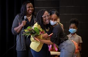 H-E-B announced Mrs. Pipkins as a finalist during a surprise visit to Rolling Hills Elementary. Students, staff, district leadership, and Mrs. Pipkins’ family welcomed her with a standing ovation and loud cheers as she made her way to the stage.