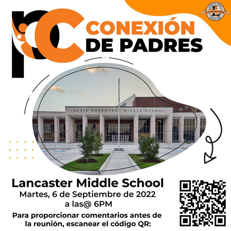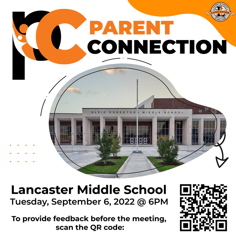 The first Parent Connection meeting will be held at Lancaster Middle School, located at 822 W. Pleasant Run Rd. Lancaster, TX 75146. The meeting will begin promptly at 6:00 p.m.