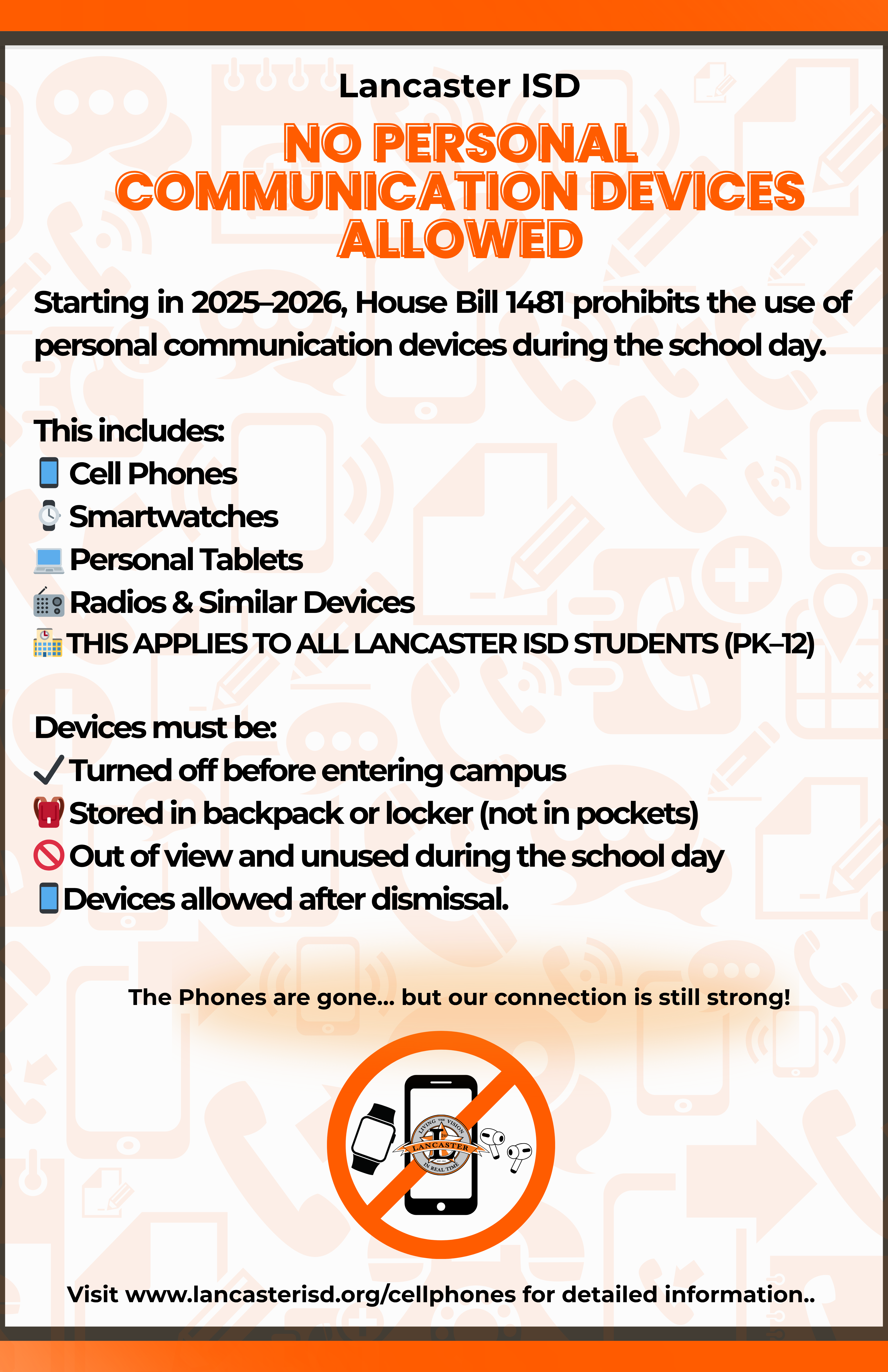 No. The Lancaster ISD app and all approved district communication tools may be accessible on personal devices, but they cannot be used during the school day. Coaches and sponsors are aware of this new law and the related protocols. They will ensure timely communication at appropriate times.